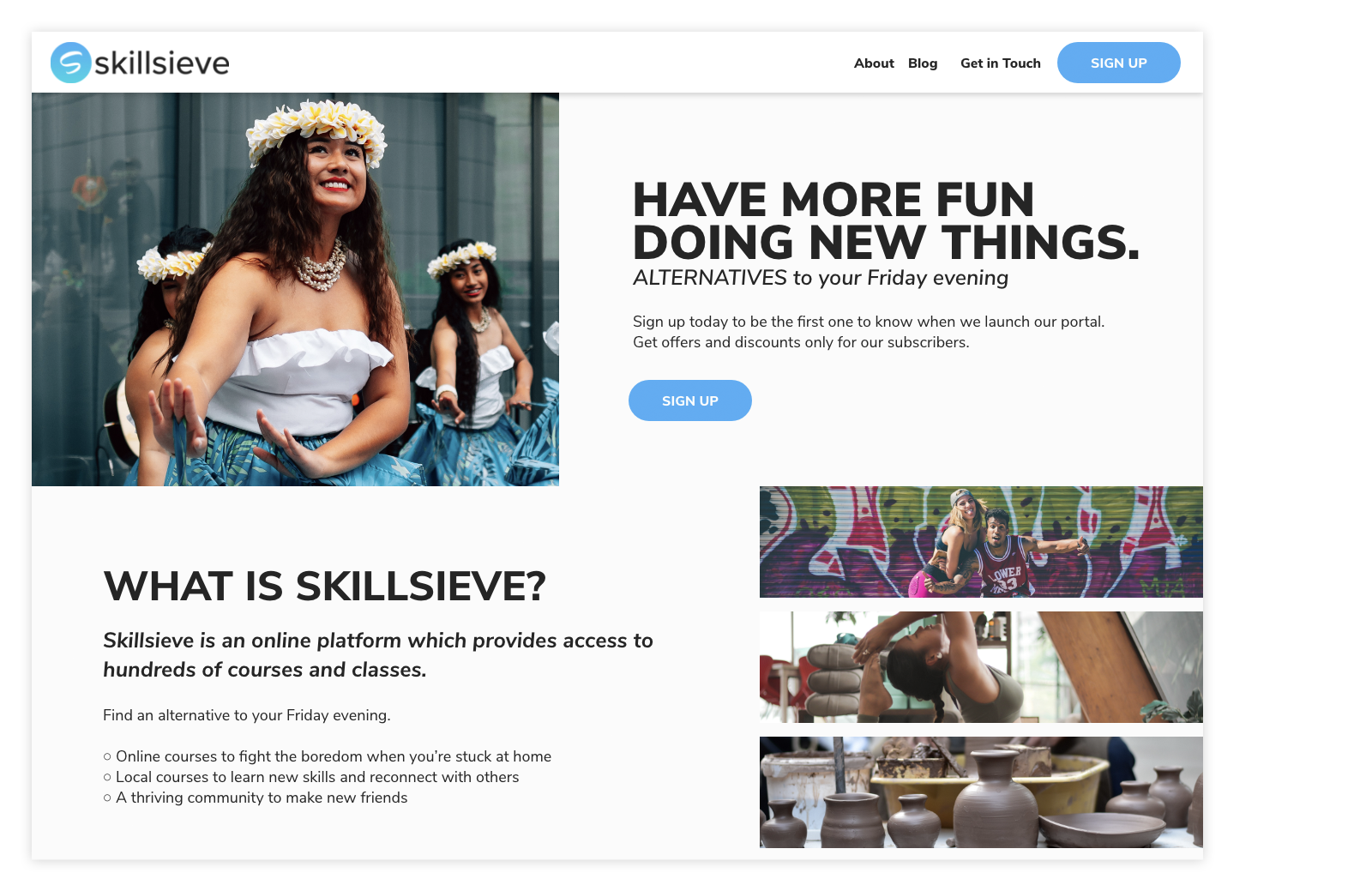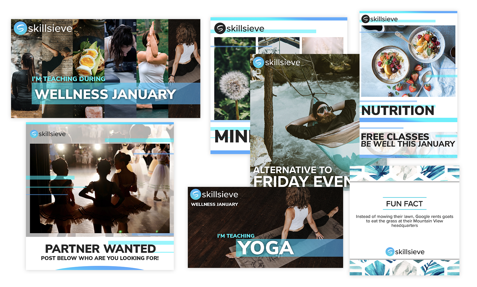 Following the establishment of the Skillsieve brand, attention shifted to defining the colour palette, tone, images, and typography. Subsequently, marketing materials and templates were crafted to empower the client to promote and cultivate brand recognition. These assets were strategically employed across various social media platforms, including Facebook, Instagram, Pinterest, and LinkedIn, to attract potential customers and instructors prior to the platform's official launch.